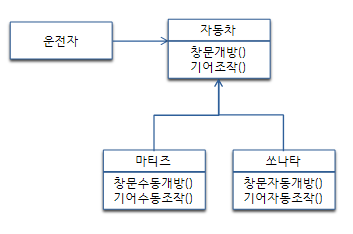자동차라는 상위 클래스 또는 인터페이스를 중간에 둠으로써 다양한 자동차가 생긴다고 해도 운전자는 운전 습관에 영향을 받지 않게 된다.